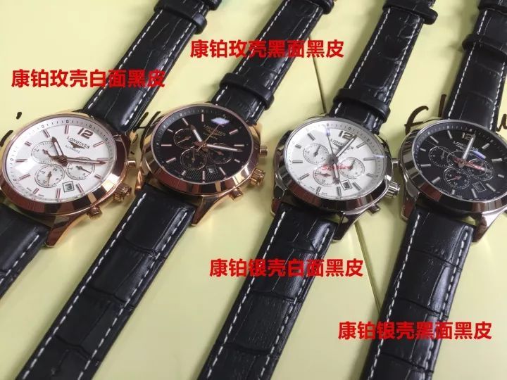 共有四个色:康铂银壳白面黑皮,康铂银壳黑面黑皮,康铂玫壳白面黑皮,康铂玫壳黑面黑皮。