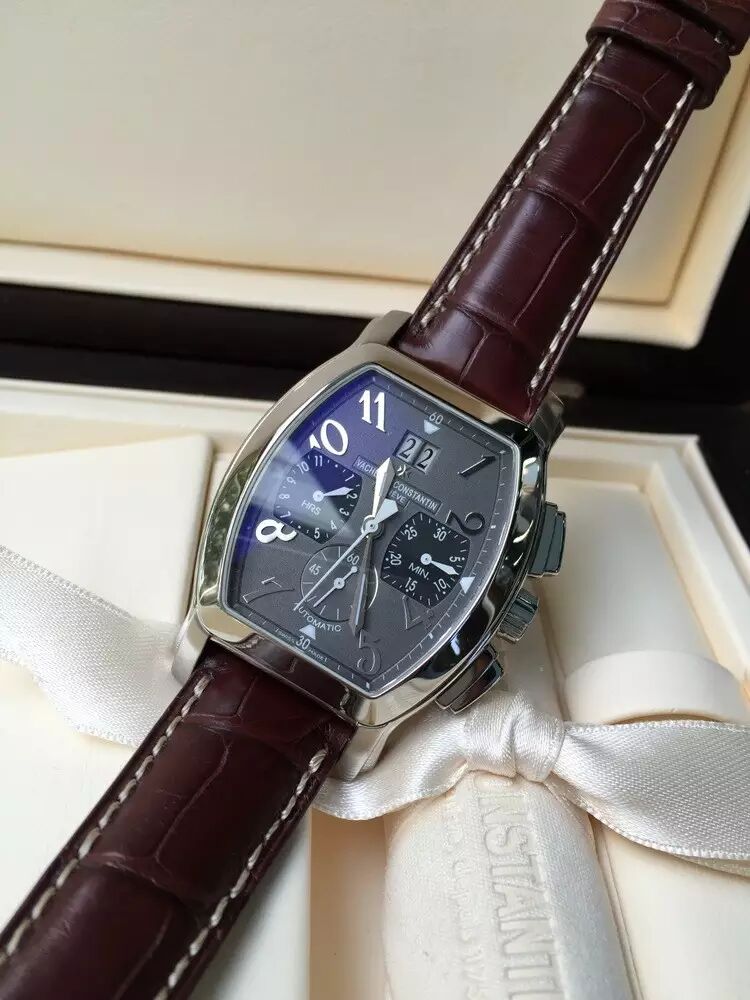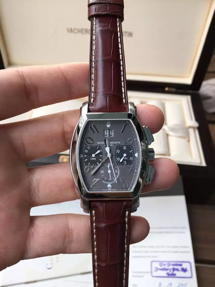 手表的保单,表盒,证书等全部齐全。经典的马耳他热款,表径37×40,深灰色表盘,酒桶行表盘,蓝宝石镜面永不磨损。密西西比鳄鱼皮表带,背面密底设计,表盘带有计时功能,12点位置大日历窗口显示。