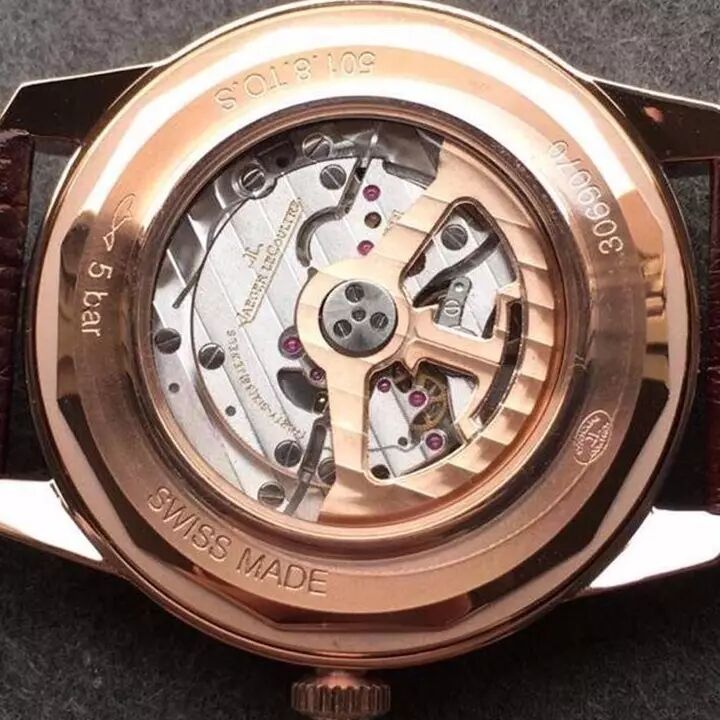 腕表搭载的是积家自己研发的770机芯,有精致美观的打磨,而更特别的是Gyrolab摆轮,以及为实现跳秒功能而搭载的特别结构。Gyrolab摆轮能够提高走时精度,在理想状态下可以达到正一负二之间