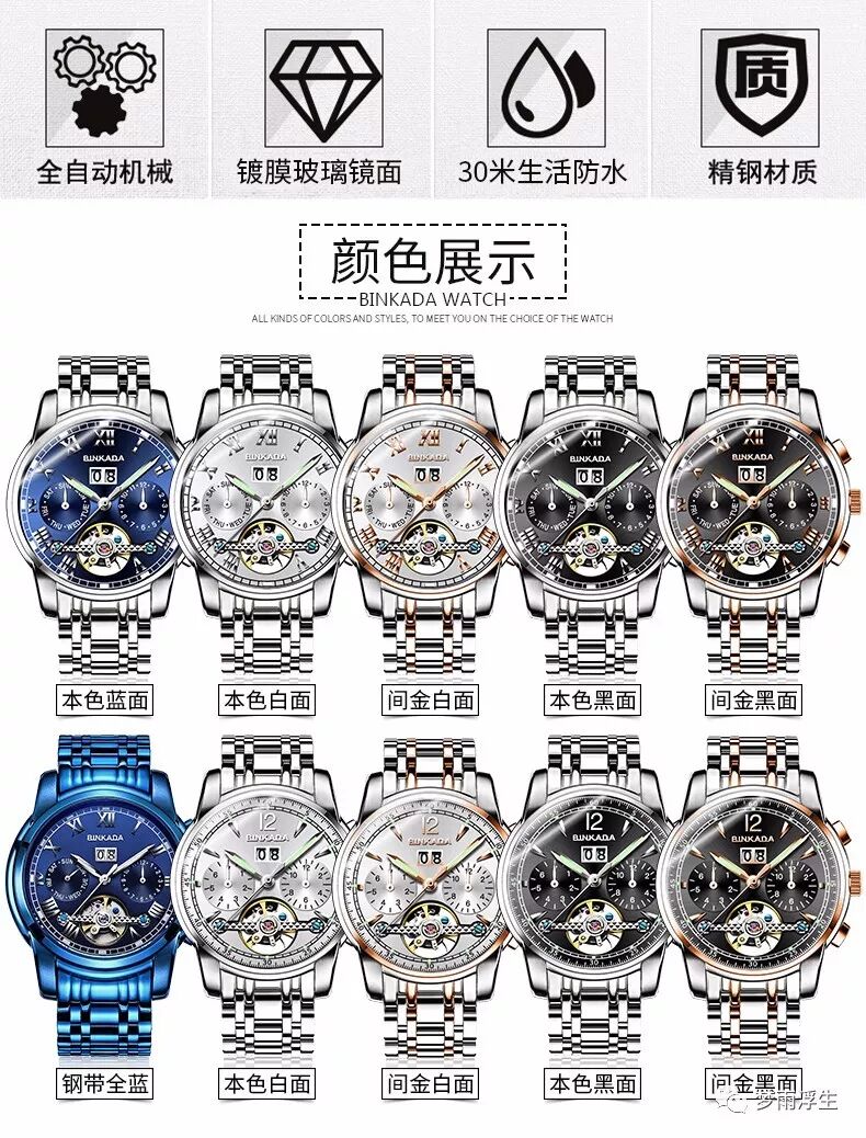 正品宾卡达手表男士全自动机械表男表镂空时尚潮流夜光防水男腕表