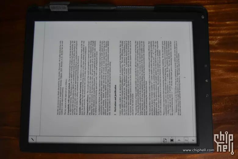 1,13.3英寸柔性E-INK屏幕,虽然在2016年的今天已经有类似配置的竞品出现,不过在当年是独此一份。A4全尺寸的PDF文档最多的就是各类科技论文了,对于latex和pdf就代表一切的用户来说,支持其他格式的浏览其实意义也不大。所以其实这款产品有非常狭窄的市场刚需取向。通常看个小说漫画什么的还不至于非得在A4 Size上看,但精读满屏公式的paper的时候,这个大小可以说给予了非常不一般的体验。