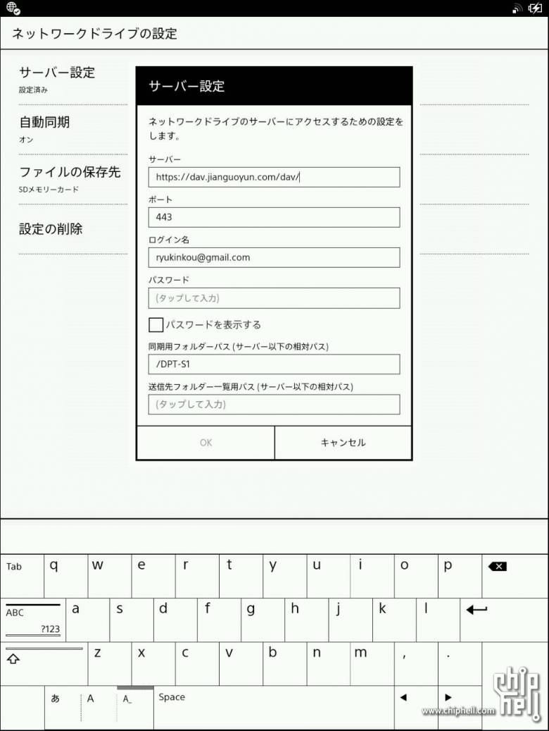 回DPT-S1上来,在 服务器设定(サーバー設定) -> 网络驱动器设定(ネットワークドライブの設定)菜单里面,填写坚果云的WebDAV资料:
