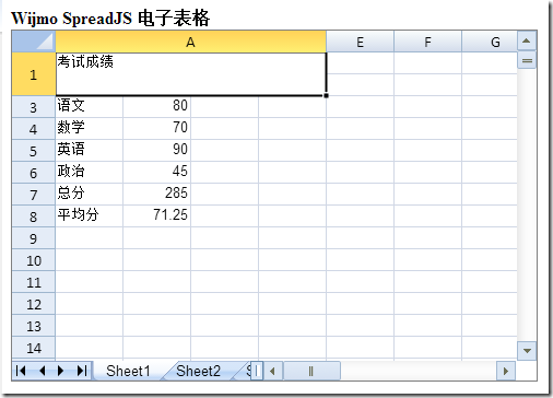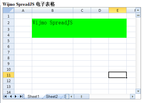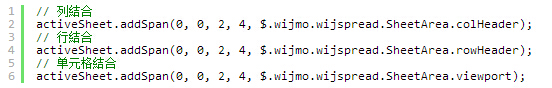 在Excel中,有合并单元格的要求;使用SpreadJS,您也可以使用addSpan方法来合并多个单元格在工作表上,结果如同Excel一样: