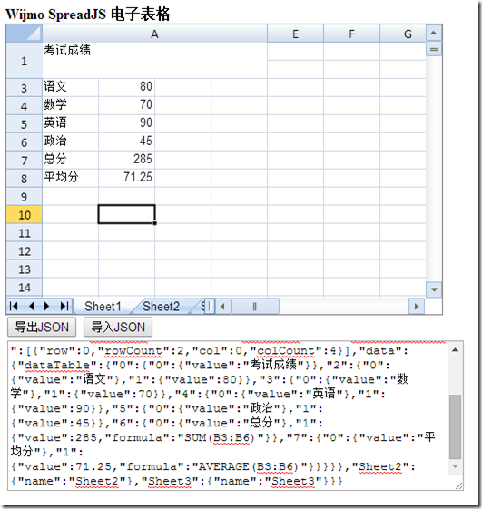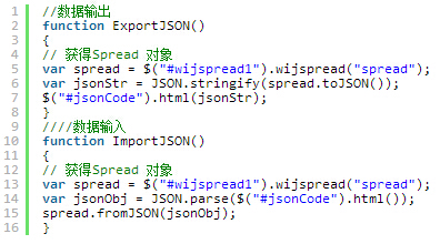 我会在SpreadJS对象中输入和输出的JSON的toJSON / fromJSON方法,同时也会用到JSON.stringify\parse方法。
