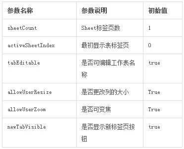 通过JavaScript对象中的参数设置到wijspread方法的参数,您可以自定义初始显示。我表2列出了主要参数。