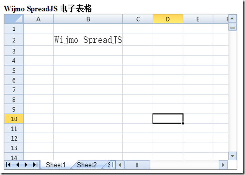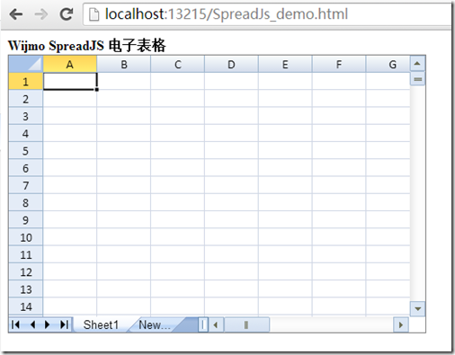 首先, 让我们试着简单地显示一个电子表格,您可以通过在HTML中,对wijspread元素, 安装如下的方法查看空电子表格,代码如下所示: