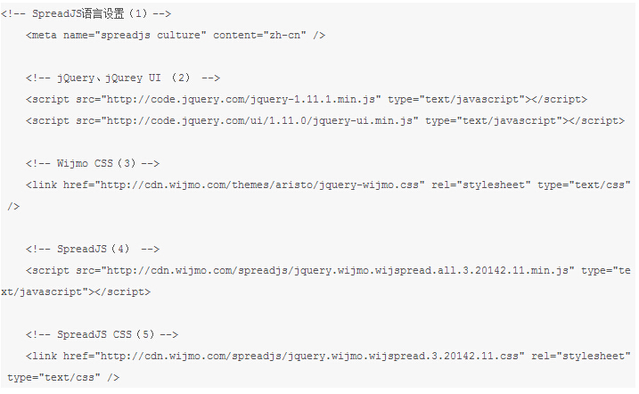 为了使用的SpreadJS,请在HTML中的head标签中列出描述。