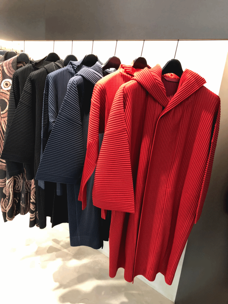 蓝小姐一心要去三宅一生。三宅一生只有岩田屋有,试了一轮之后,买下一件毛衣,但是在广州的高温下,她很忧桑自己无法马上穿上。