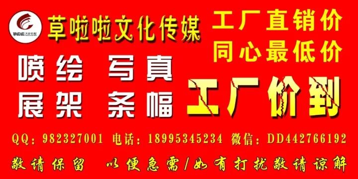 草啦啦鲜花庆典广告装饰有限公司业务范围全面升级️️:我公司承接广告设计、大型喷绘写真、彩页名片、横幅展架、监控安防、LED显示屏、活动策划、开业庆典、舞台灯光、品牌推广、鲜花礼仪等广告延伸业务,欢迎致电公司实体广告部专线0953-8026444、18995345234