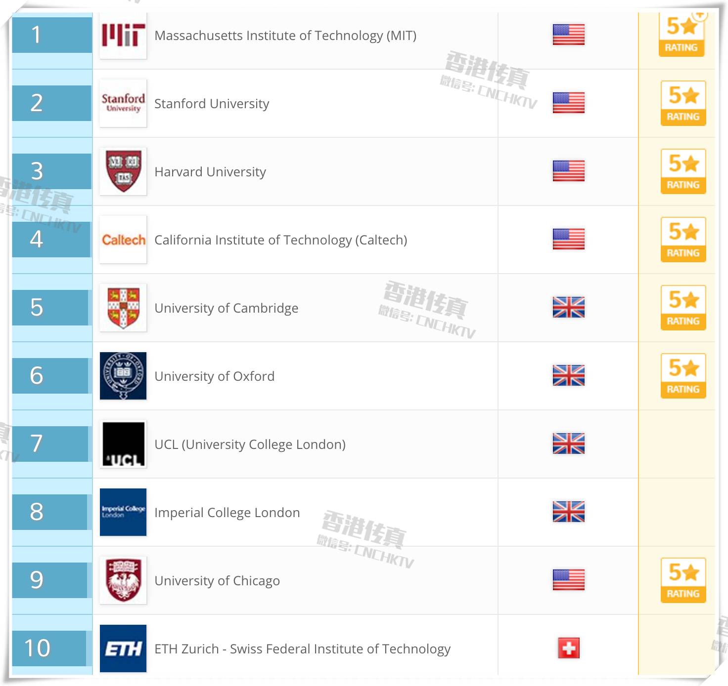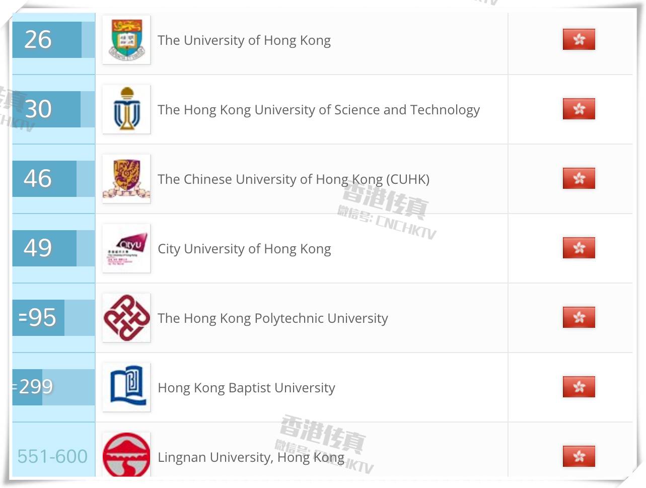 此次被纳入榜单的香港高校共有7所,进入前300的学校有6所,进入前100的高校有5所,进入全球前50的有4所!让我们仔细看看榜单: