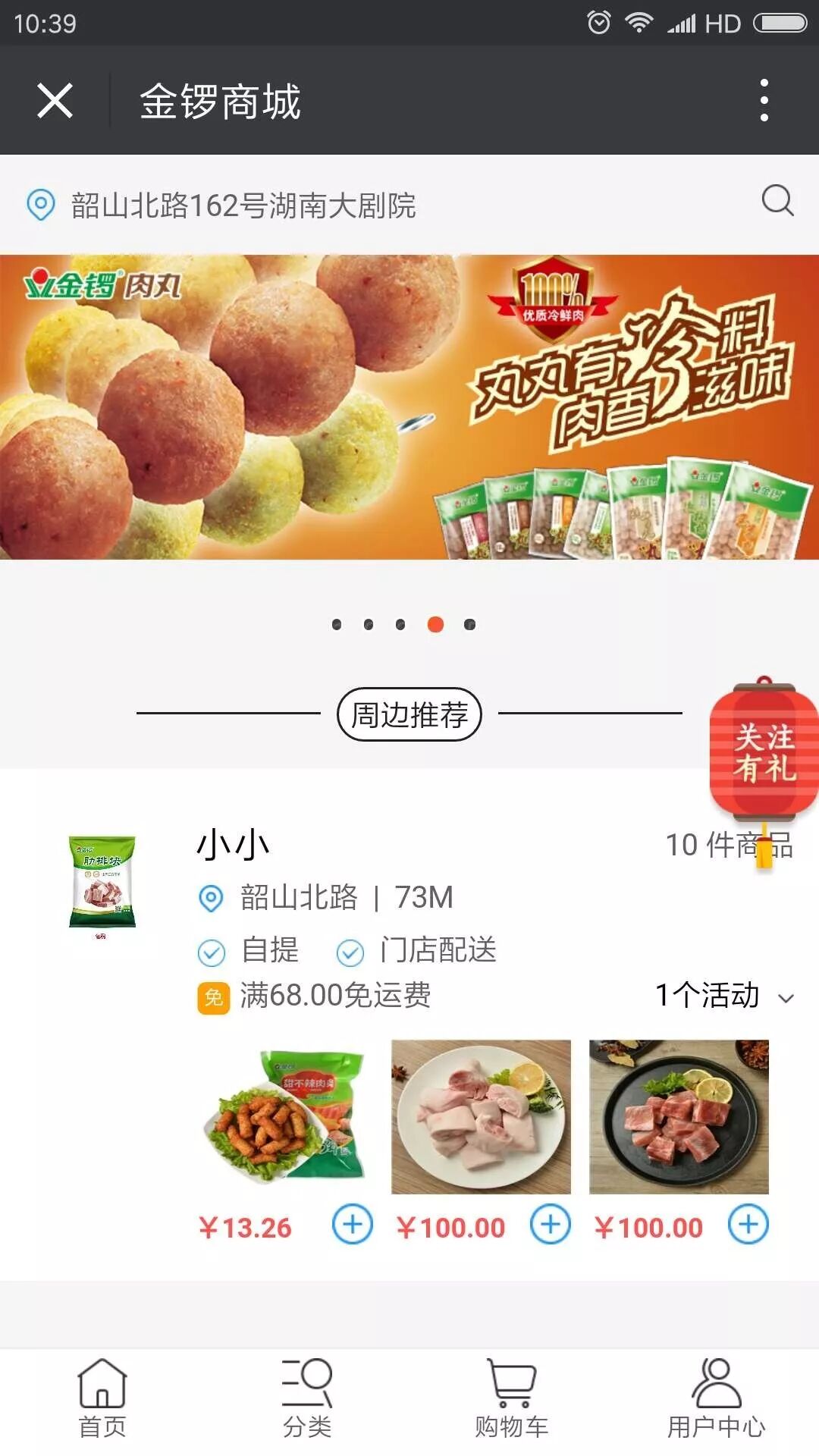 如何让消费者第一时间收到货物呢?金锣选择了使用HiShop海商移动云商城的移动端多门店首页,通过LBS定位,在用户打开APP、微信商城、WAP商城时,迅速获取用户所在的地理位置,系统自动分析,将匹配范围内的商家门店按照距离进行排序,打造出每个消费者独有的首页内容。