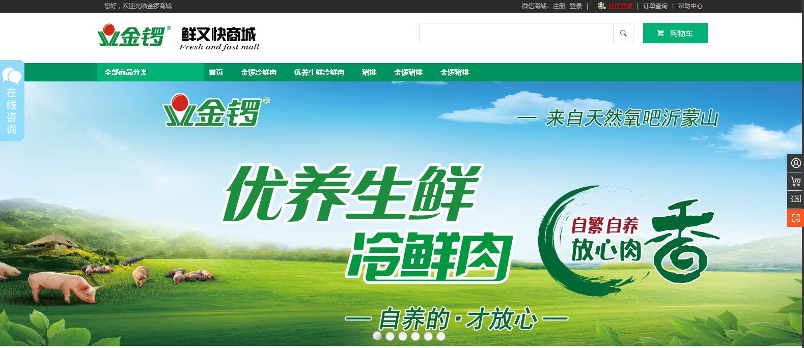 强大的线下渠道铺设,为金锣集团开拓线上渠道奠定了基础。要做线上电商,首先要找到过硬的技术支持,多方考察之后,金锣集团选择了国内最早的电商系统与服务提供商HiShop海商,通过HiShop海商旗下产品移动云商城搭建了金锣鲜又快网上商城、金锣生鲜微信商城、金锣鲜又快APP商城等。