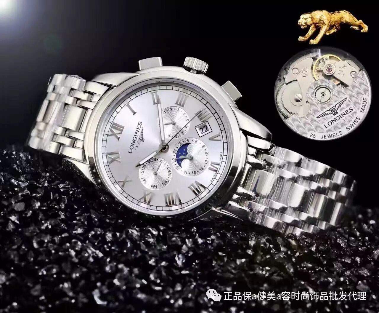 优价礼品,品牌机械表,品牌:浪琴类型:多功能男士腕表·钢带机芯:⚙️全自动机械镜面:蓝宝镜面材质:316精钢(银色+间金)尺寸:直径约41mm 厚度约11mm