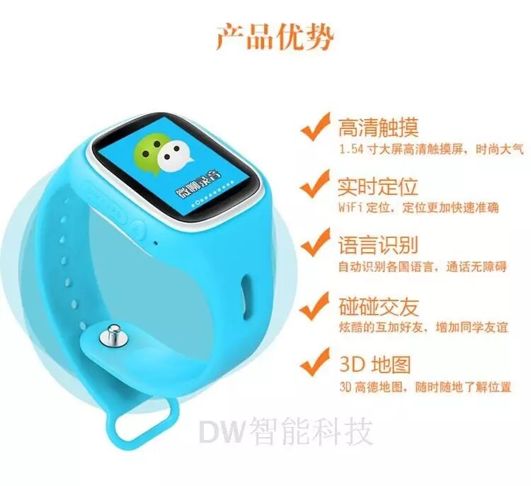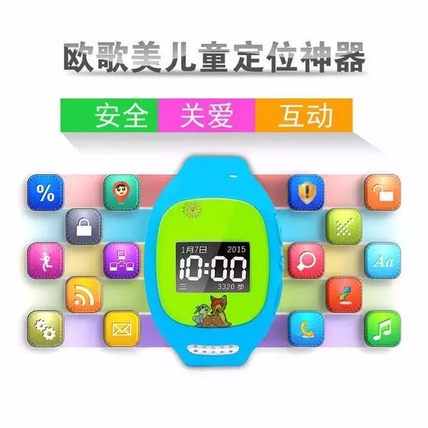欧歌美儿童电话手表,带触摸,定位,通话,速学,微聊等实用功能!颜色有蓝色,粉色!不管男孩儿女孩儿都喜爱!