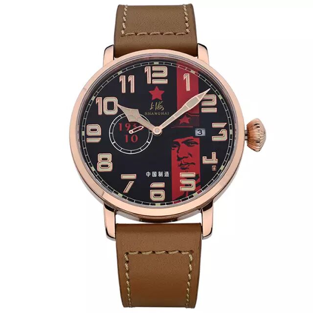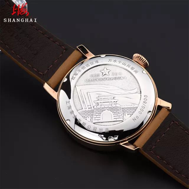 这款腕表是为纪念长征胜利80周年特地推出的800枚限量手表。黑底红色涂鸦表盘,绘有红色头像,左侧独立小表盘上用红色字体标明1936.10的字样,表明特地纪念1936年10月以甘肃会宁大会师为标志的胜利长征。
