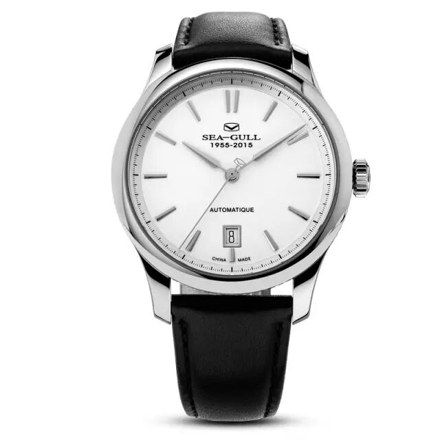 腕表直径40mm,厚9mm,表壳采用不锈钢材质,防水50米。6点钟位置为日期显示窗口,12点钟位置下为海鸥LOGO及(1955-2015)纪念周年标识。搭载ST1812自动上链机械机芯,振频28800次/小时。