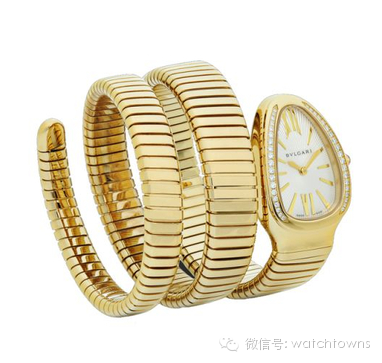 宝格丽SERPENTI系列SP35C6GDG.2T腕表,石英机芯,18k黄金材质,表壳镶钻,表链和表壳一体呈蛇形,参考价格246100元(以实际价格为准),属于时装表。