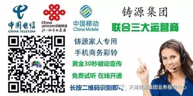1.长按下方二维码,开启属于你的铸源事业彩铃!