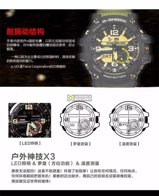 好东西我更觉得是应该由内而外去介绍的。中国负责组装的小泥王GG1000,机芯全部是由日本原装进口。我们拆开来给大家看了,希望大家能更直观的去了解他。它不光有颜值,它的内涵更是迷人。 自从去年出现至现在,真的火的不要不要的。大泥王高昂的价格,让很多小伙伴都望而却步。小泥王的出现满足了很多小伙伴的需求,除了不是光波之外,大泥王该有的功能 ,GG1000 全部都有。户外强大的指北针,实时温度显示。200米深潜防水,50多个地区时间。喜欢旅游的你,真的非常适合。 喜欢极限骑行的你,热爱极限登山的你,喜欢徒步的驴友,更是热爱潜水的小伙伴,GG1000真的不只是一块手表,他的强大功能能,是给我们保障的旅行伴侣。给你满满的安全感。不仅如此,在日常生活中,超高的颜值也是装逼利器。尽管你周围的朋友有一块劳力士,但是他的劳力士也只是一块耐看不耐用的钢疙瘩而已 。上不了雪山,入不了海洋,没意义。 我们拆开一个,大家可以直接看到 MADE IN JAPAN .机芯功能是非常强大。