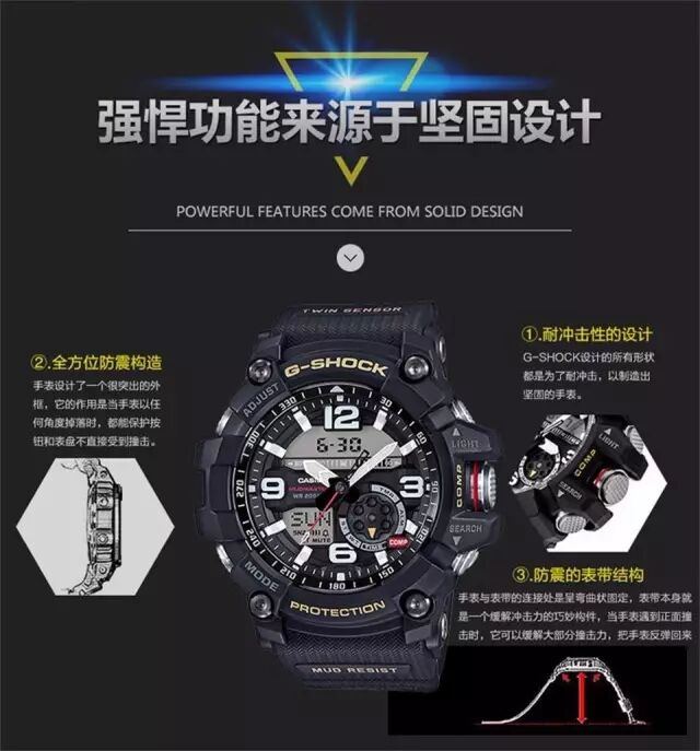 下面我们来看一组官方的介绍,坚韧无畏 坚固防护 强悍是一种态度。听着广告词就能感受他的强大,保护功能非常的强大。设计的本身,他已经就不单单是一块表,更是我们极限运动中的保护者。