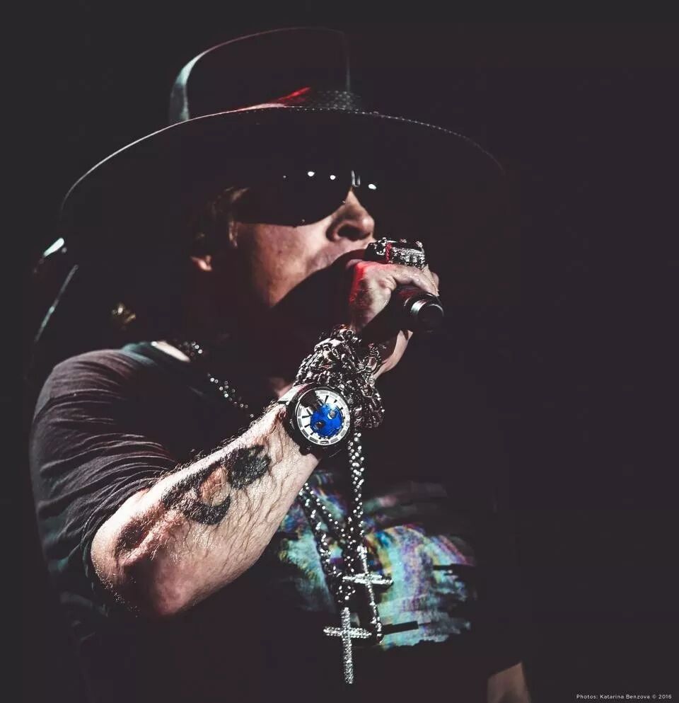 蓝色款是HYT与枪炮玫瑰主唱Axl Rose的合作款。骷髅头以大马士革钢打造,骚气十足。