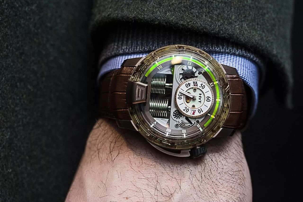大家都知道,机械表内部零件一进水,基本宣告完蛋。HYT偏偏要“作死”,挑战液体驱动手表。