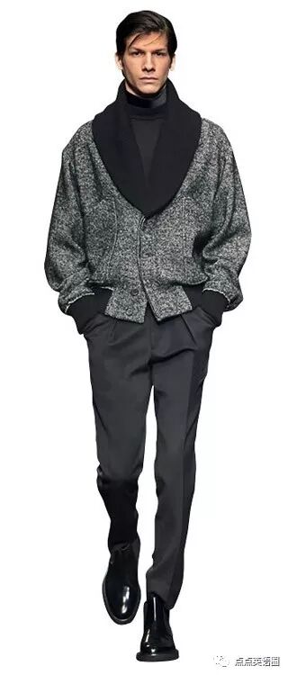 2015年是Giorgio Armani品牌四十周年,秋冬男装秀场如同置身于海明威的小说之中,热情而活力的独立角色构筑了该系列的故事情节,打造出刚健性感,亦不失内在的柔和形象,灰与蓝低调儒雅,经典奢华的男装款式,展现完美的意大利绅士风度。