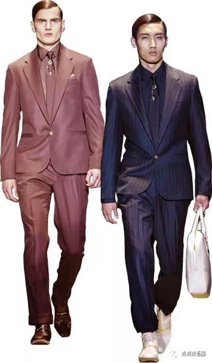 Versace 2015秋冬男装的调色板放在了柔和的中性色调上,模特被连帽貂皮大衣、羊羔毛外套、长长的针织衫包裹起来,传递出“舒适且性感”的信息。Donatella将剪裁放在了首位,那些挺括的西装不仅廓形立体,在扣子等细节上也用尽心思。针织leggings制造出层次感,颇有运动风格的造型时髦而引人注目。