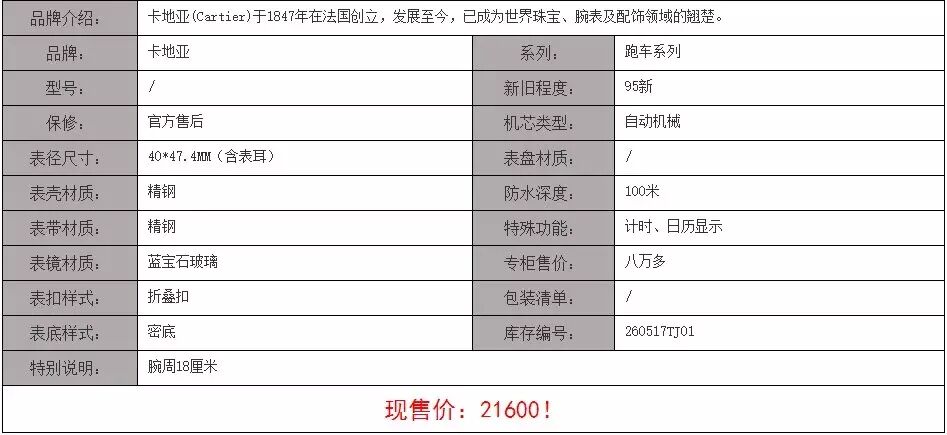 卡地亚跑车系列白盘钢款折叠扣自动机械表 现售价:21600! 260517TJ01