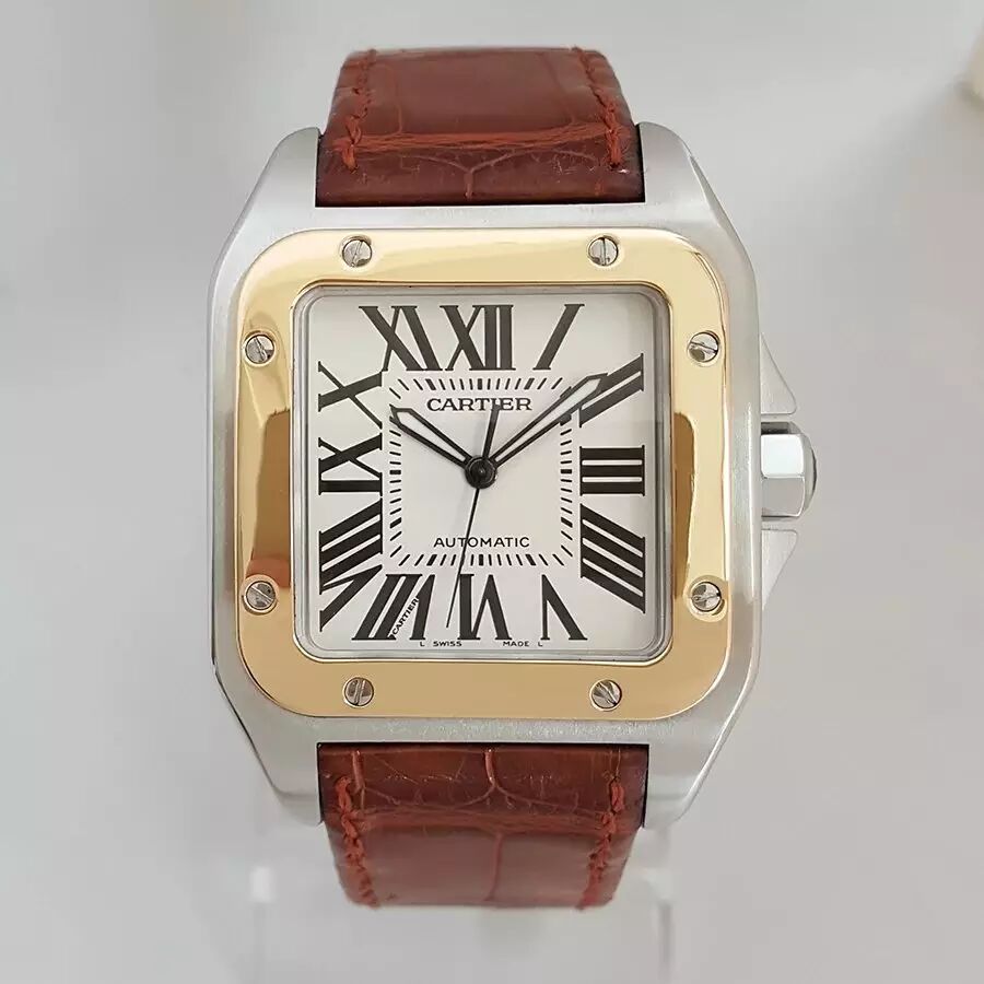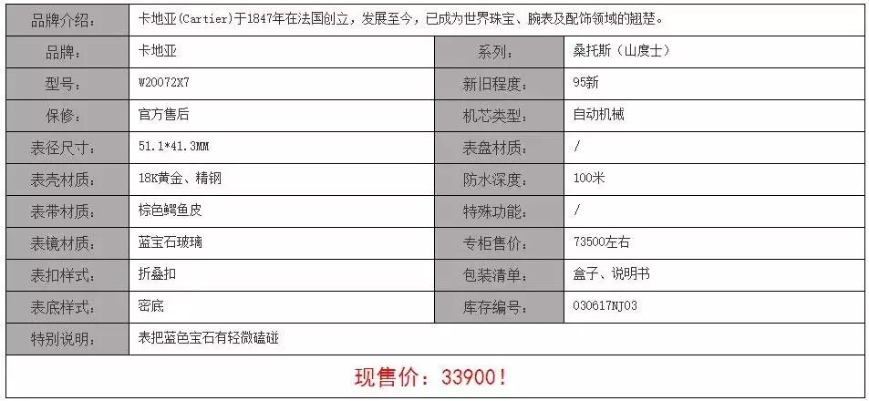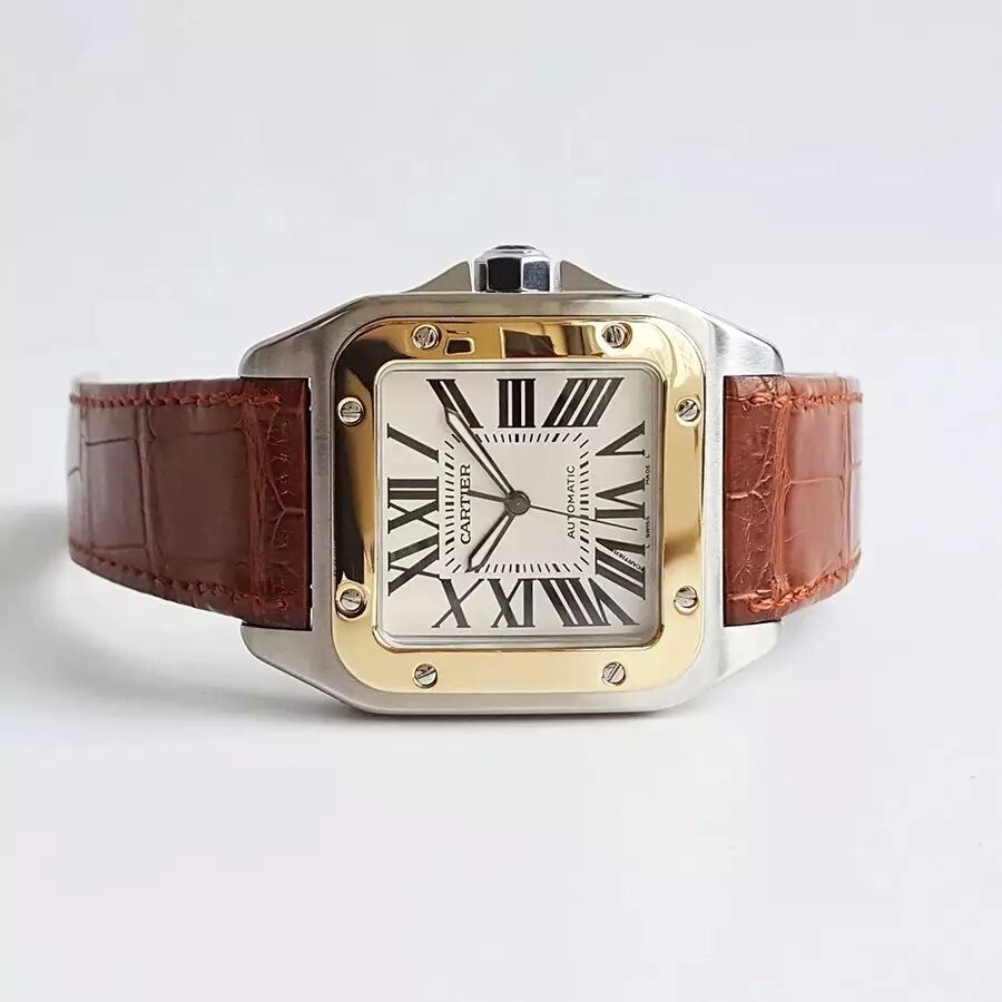 卡地亚桑托斯间金款折叠扣自动机械表W20072X7 现售价:33900!030617NJ03