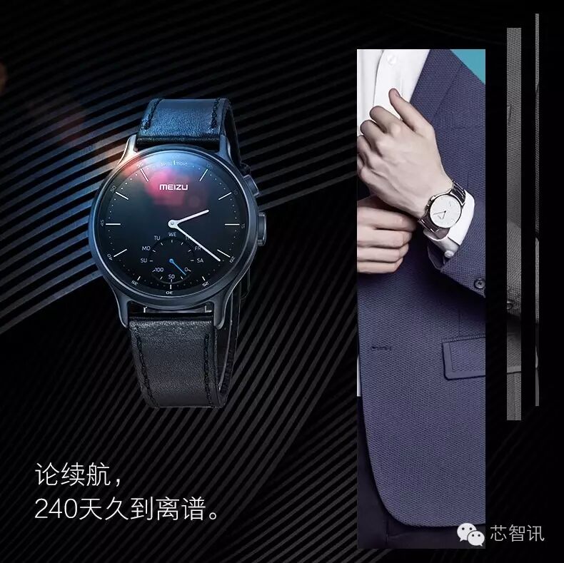 由于,魅族轻智能手表mix采用是石英/机械表+智能传感器的设计,所以续航也是mix的一大亮点,官方宣称手表的续航时间长达240天。