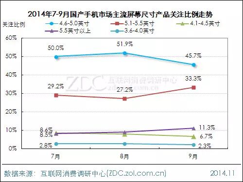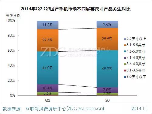 ·4.6-5.0英寸机型关注度逼近五成