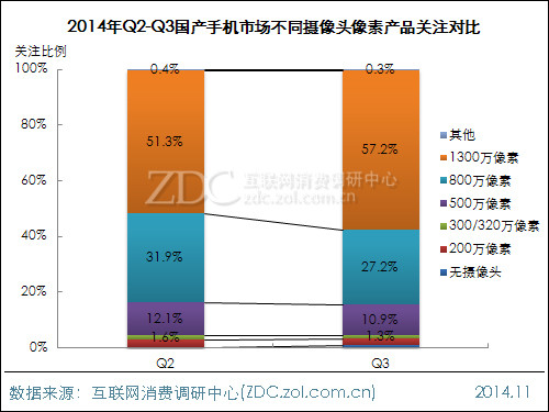 2014Q2-Q3中国国产手机市场不同摄像头像素产品关注对比