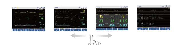 主屏四种显示形式(波形、波形+环图、大字体、监测参数)手指滑动随时切换,方便快捷,保证病人安全