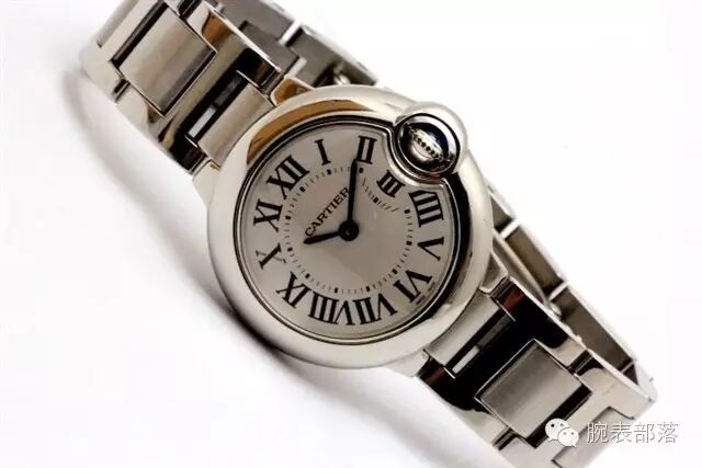 这里我们以卡地亚这个比较经典女表品牌为例,上面这款表为蓝气球系列W69010Z4,精钢材质,搭载石英机芯,表径28.6毫米。这样一个表径可以说是蓝气球系列里面非常小的了,如果是搭载机械机芯的同类表款,那么你会发现表径几乎没有小于30毫米的表款,甚至一般都在33毫米以上,因为小巧又相对比较便宜的缘故,所以这也是卡地亚最受关注的表款之一。