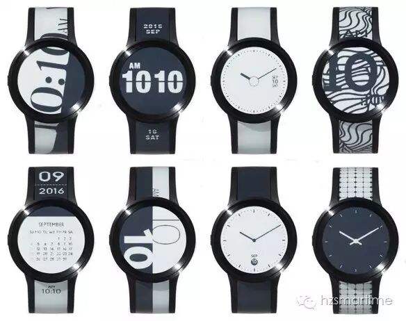新款FES Watch U延续全水墨屏的设计,手表整体(包括表盘和表带)都搭载了 E-Ink 电子墨水屏,用户可通过配套的APP,将表盘和表带的图案同时进行更换,也可以分别变换,甚至可以让腕带部分单独显示日期信息。
