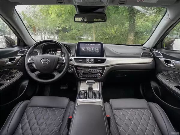 GA8的内饰设计延续了传祺家族的横向层叠式中控布局,通过横向延伸的饱满曲线营造一种中正平和的从容气度。悬浮式的中控大屏、精致木纹饰板以及镀铬饰条的恰当点缀,极力营造出豪华感。中控上方采用的是软质搪塑工艺,还加入了缝线的处理,视觉效果还不错。