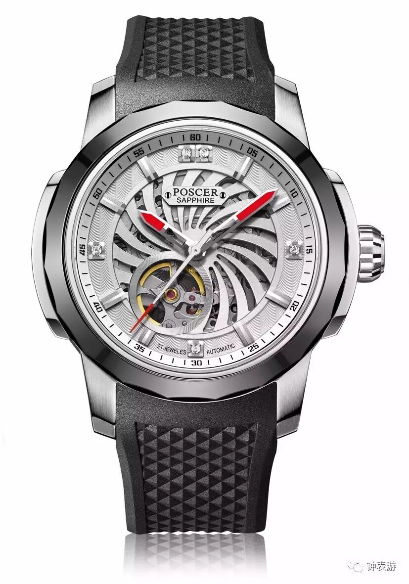 宝时捷酷朗系列2017国际冠军杯特别款腕表,42毫米表径,表盘设计回旋形动感线条、镂空机芯,运动风强烈,与绿茵场上球员的阳刚活力完美融合。配高度亲肤的天然环保硅胶表带,佩戴舒适