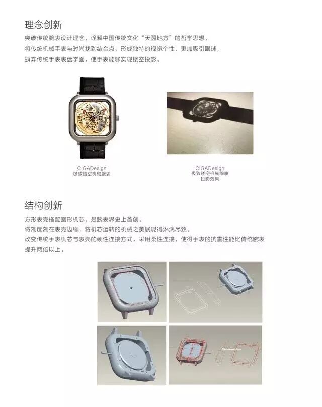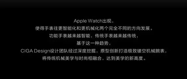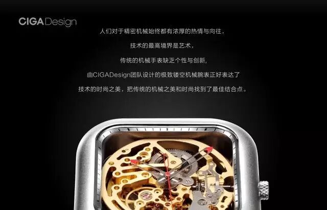 CIGA Design 设计出了这款即使你身处黑暗,也能清晰把握时间脉络、看得见的光阴的手表。这款表最大的特点是表面并无数字,镂空机械腕表。海鸥机芯、喷砂圆角金色,完美弧度,棱角分明,触手可及,诱惑无法可当,表面指针显示分钟。让你能够真真切切地感受到时间的存在。