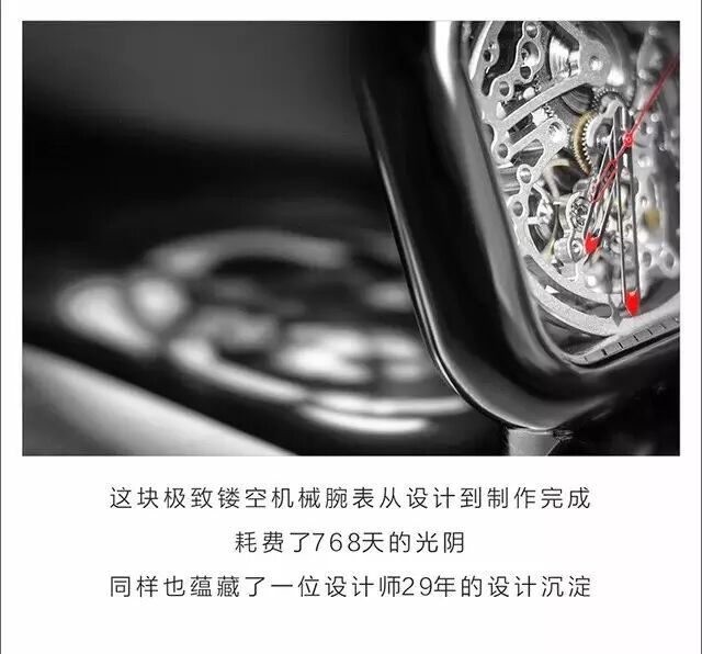 一款符合自己气质的表,可以彰显自己的品味,对整身搭配来说是画龙点睛之笔。而极致简风的腕表,搭配合适衣物以及合脚的皮靴,便可以轻松打造出男人所拥有的风格。今天小编就来推荐几款极致简风的镂空机械腕表给大家~一位设计师30年的沉淀,耗费768个光阴,中国原创设计品牌。
