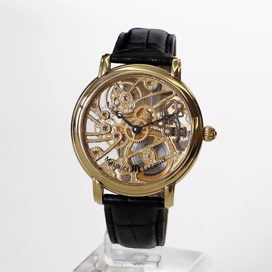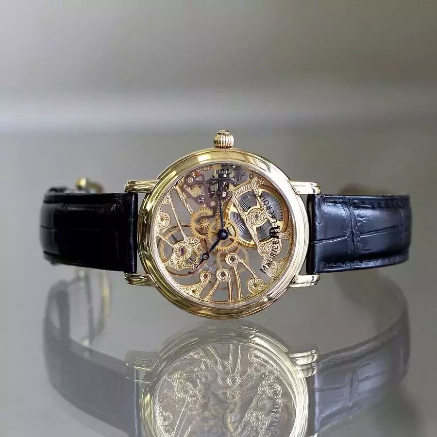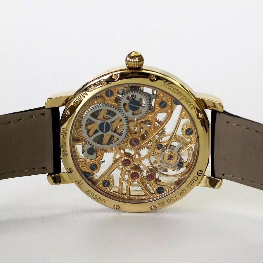 艾美匠心系列传统镂空雕花全黄金手动机械腕表。型号:MP7048-YG101-000。