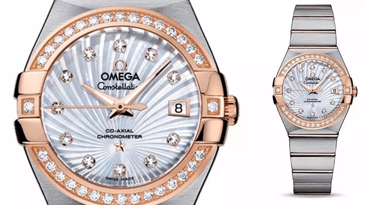 18K红金的表圈上镶嵌了32颗璀璨真钻,看上去就富贵逼人。女表也可以很精密,腕表搭载的欧米茄8520自动上链同轴机芯,配备带有硅游丝的无卡度游丝摆轮。双向自动上链系统。机芯镀铑表面饰有独特的阿拉伯风格日内瓦波纹,动力时长达到50小时。