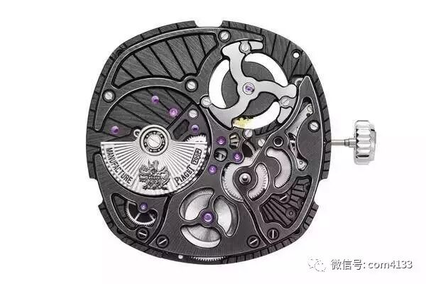 伯爵Generator机芯的擒纵部分在右上角,那是一个石英调速机构