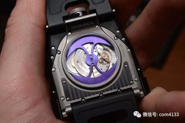 时、分显示看似简单直接,实际上却经过90度反射、并放大了20%的双向跳时反转时标;HM5拥有充满未来感的表壳设计,其灵感却来自1970年代;HM5的表壳不防水,但机芯却可以;HM5配备一枚现代的自动上链机械机芯,但灵感却来自于石英表称霸的年代;装在超级跑车后面的百叶窗用来遮挡光线,但在HM5上却是让光线进入;HM5备有排气管设计,但却用来排水;HM5 On the Road Again再次启动了它的旅程,但所有的灵感几乎全来自自家车库。![]()
