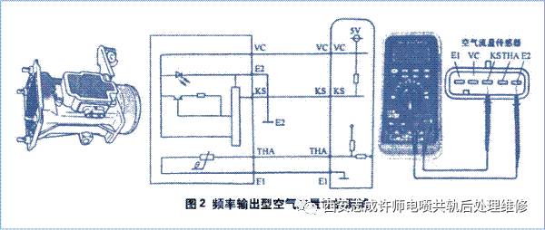 (1)翼板式空气流量计主要有两种: 一种是随着空气流量的增加输出的信号电压升高;另一种是随着空气流量的增加输出的信号电压降低,这两种类型都属于模拟电压量输出。翼板式空气流量计是一个三线传感器,其中两条是参考电压的正负端,另一条是滑动电阻活动触点臂,它向电脑提供与翼板转动角度成比例的输出电压信号——急加速时翼板在空气流动的动压作用下,超过正常摆动角度的过程信号,这就为控制电脑提供混合气加浓的控制信号。这是一个非常重要的传感器,因为控制电脑依据这个信号来计算发动机负荷、点火时间、废气再循环控制及发动机怠速控制和其它参数。不良的空气流量计会造成发动机喘振和怠速不良,以及发动机性能和排放问题。有些车型,如丰田车的翼板式空气流量计把燃油泵触点和进气温度传感器做在一起,所以有六个输出端子,它的输出电压随着进气温度的升高而减小。