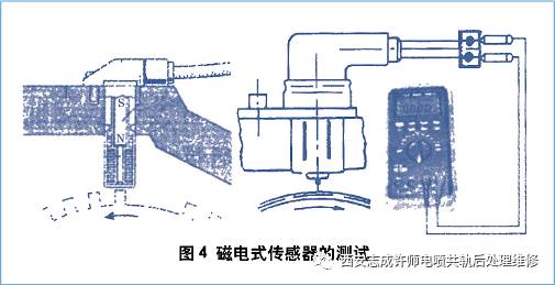 磁电式转速传感器的测试:磁电式传感器的主要组成部分是线圈,因此首先要对线圈的阻值及通断进行测试,应在符合规定的范围内。测试其信号输出,将汽车专用表打到交流(AC)档,按功能转换键选择“AC”和“Hz”同时测量。让铁质环状齿轮转动,这时观察到信号的幅值和频率随转速的增加而增加,较小的幅值可能是由于传感器间隙太大造成的。