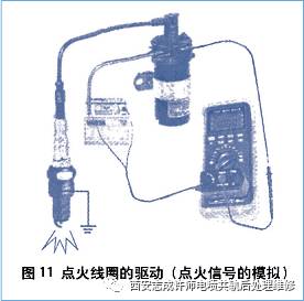 点火信号的模拟,将万用表调到10Hz档,占空比调到5%—10%范围内,将转换模块开关打到右边正脉冲档,利用红、黑表笔接触点火信号线,观察点火模块的工作性能。