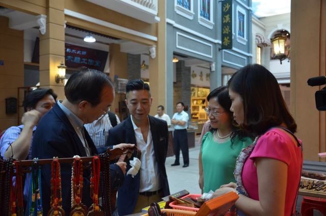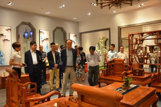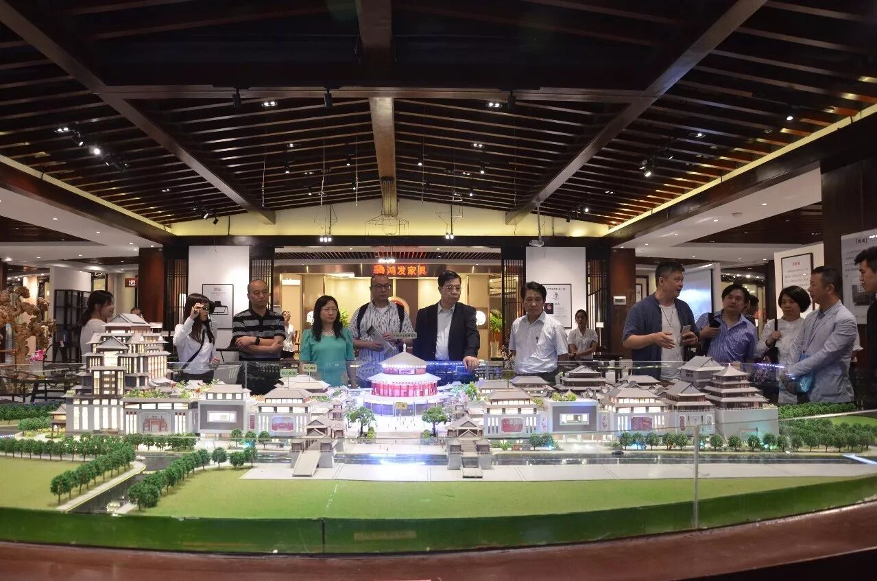 当天下午,,先后参观了红博城的项目沙盘、岭南文化骑楼街、千年走一回博物馆以及特色家具展厅,在参观的过程中,林雅科主席还向客人们详细介绍了红博城的规划设计以及大涌红木家具产业的发展情况。红博城极具特色的宏伟建筑以及大涌红木家具巧夺天工的雕刻技艺,让客人们赞不绝口。