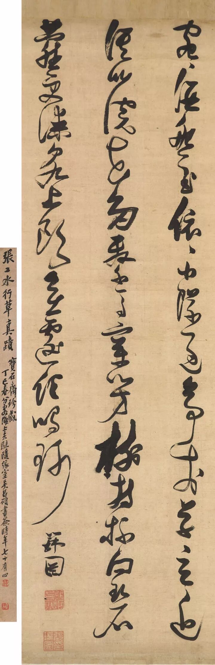 画卷后自题行书,取法唐人写经体,笔法跌宕有节奏,深谙掌竖腕平执笔的奥秘,亦具宋徽宗瘦金体的韵味。包世臣把陈洪绶的书法列为逸品,云:「楚调自歌,不谬风雅,曰逸品。」他的书画同调,对后期的画家恽寿平、于非闇、谢稚柳、任熊、任熏等都影响深远。