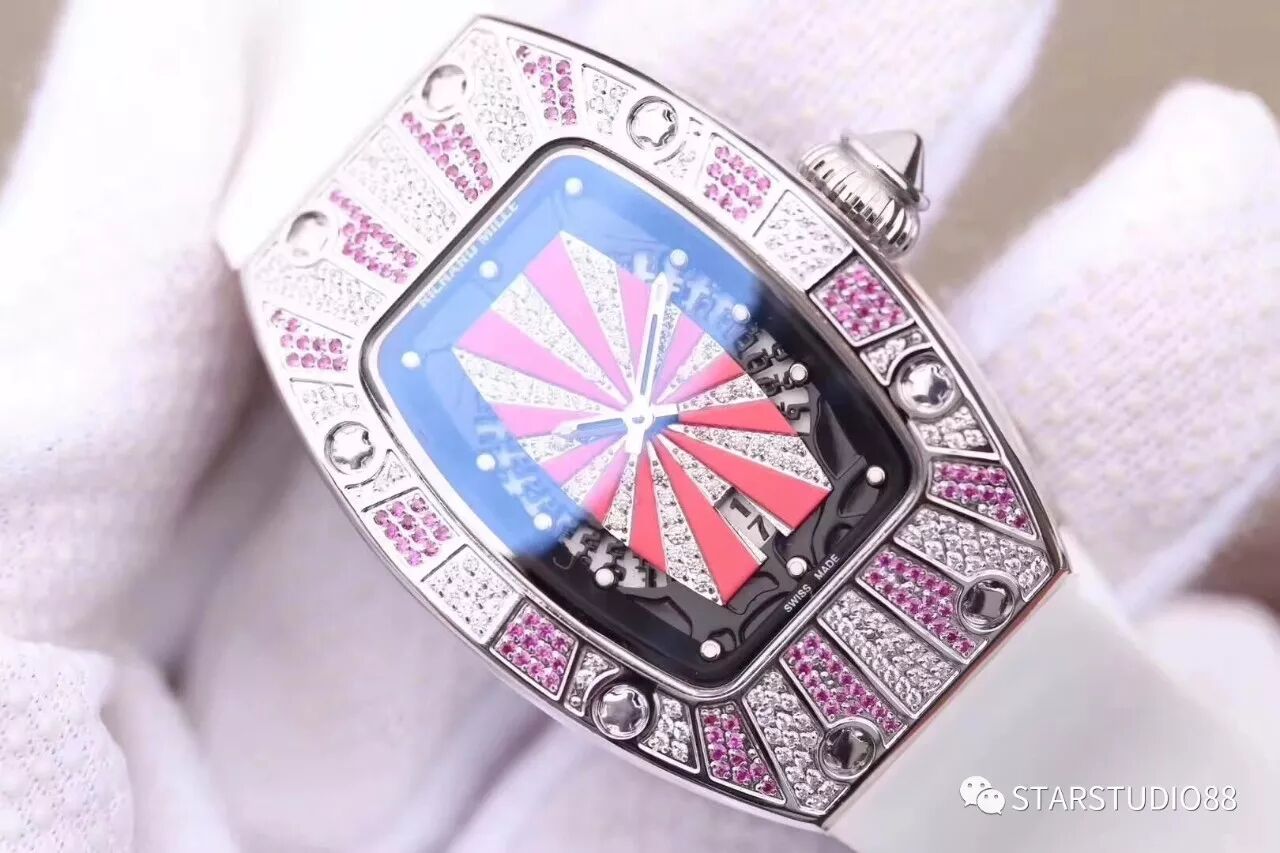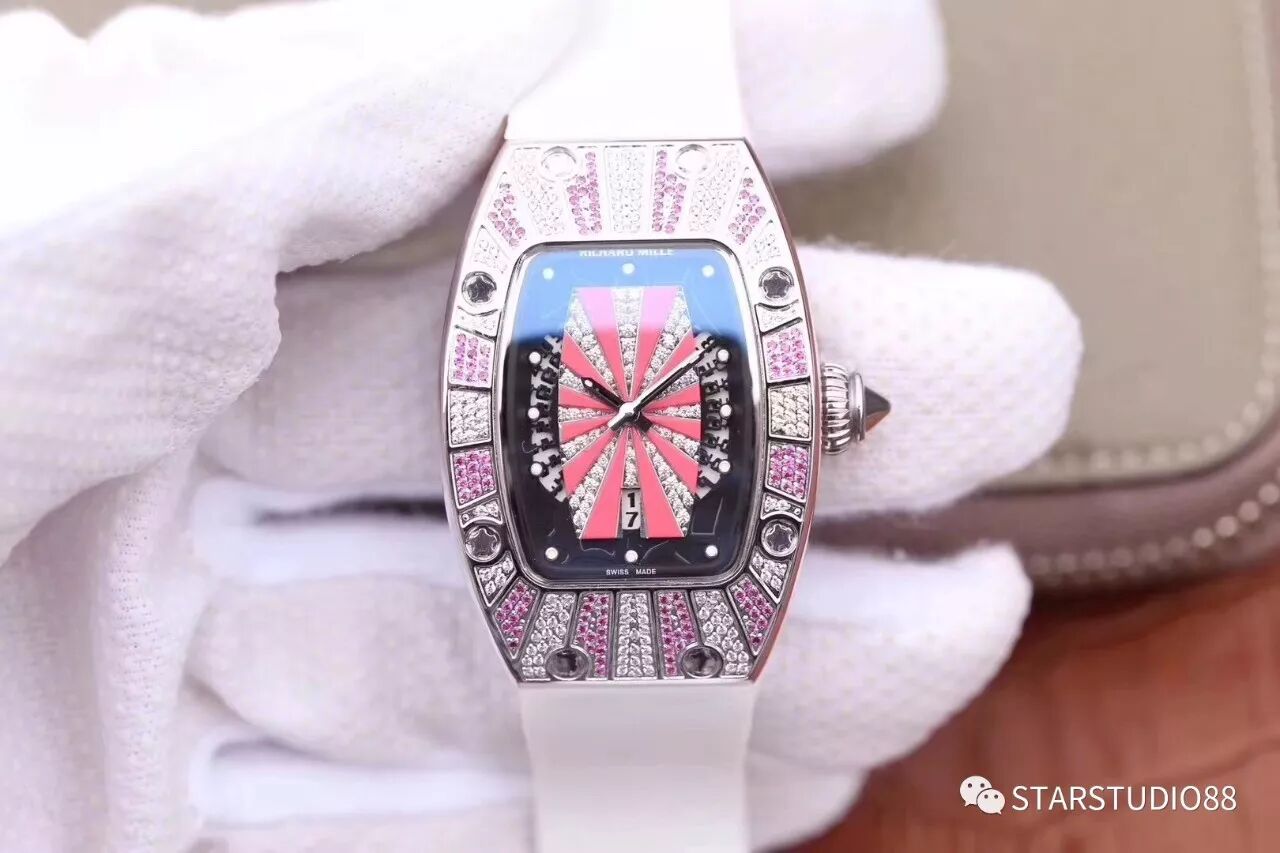 理查德米勒RM007女士自动机械腕表,45*31毫米,女士,电18k白金,原装硅胶表带。Z015